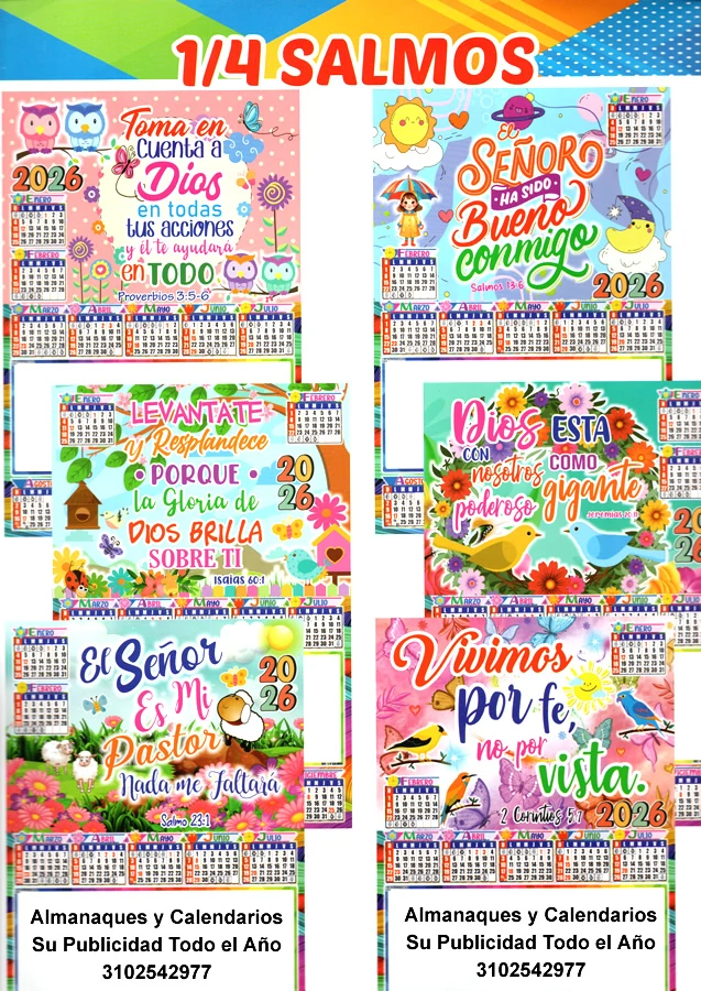 Lleno de inspiración y espiritualidad, este almanaque de pared presenta ocho hermosos motivos de salmos en un formato grande de 50 x 35 cm Ref. 1/4. Ideal para hogares y espacios de reflexión, cada mes te ofrece un recordatorio espiritual que te inspira y motiva en tu día a día.